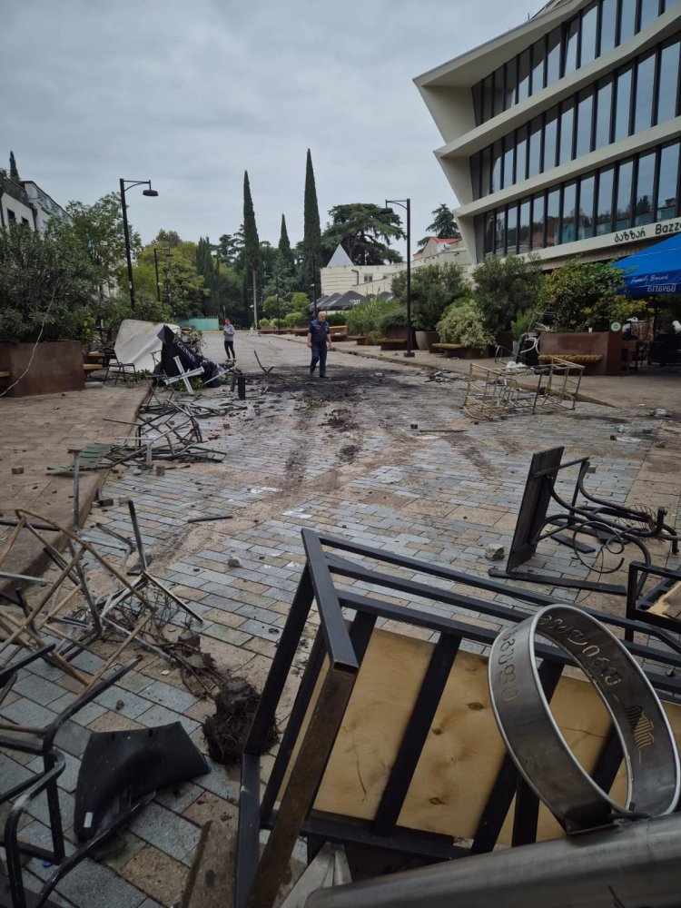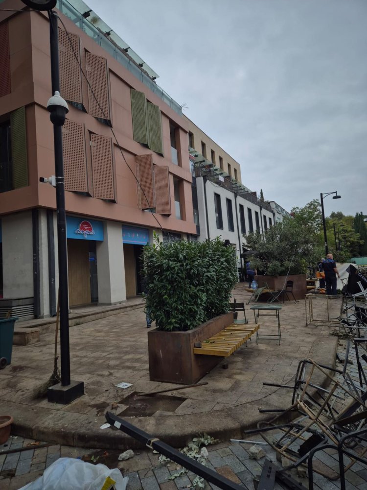 როგორც იცით, დამტვრეულია პრეზიდენტის ადმინისტრაციის ეზოს ღობე, ხოლო მოპირდაპირე მხარეს განთავსებული ბოძკინტები დაზიანებული, დაღუნულია ბოლარდები, რომლებიც საფეხმავლო ზონას ავტომანქანების ზონისგან იცავენ. სხვადასხვა ინფრასტრუქტურა - საქანელები, მცენარეები, ქოთნები, გამწვანებული თარგები და დეკორატიული ელემენტები, რომლებიც რეაბილიტირებულ ქუჩაზე და კაფეების მიმდებარედ იყო, დიდწილად დაზიანებულია. აქედან ნაწილი აღდგენას ექვემდებარება, ნაწილი კი სრულად განადგურდა.